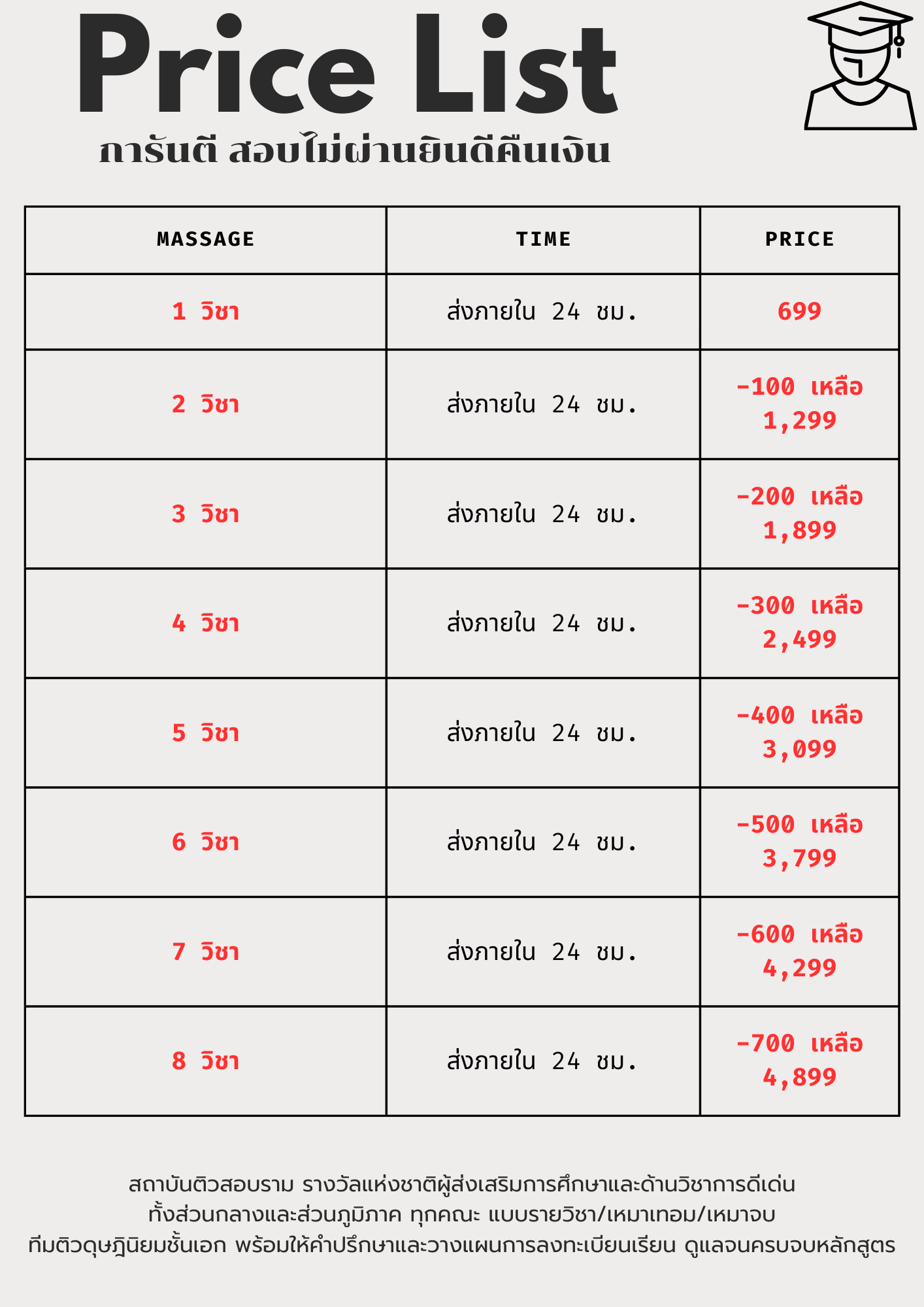 ปกติ +เพิ่ม 350 บาท/วิชา วันนี้แถมฟรี!! ไปเลยทุกวิชาที่สั่งรอบนี้...